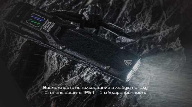 Крім того, EDC25 обладнаний вбудованим літій-іонним акумулятором ємністю 1700 мА·год, що забезпечує до 55 годин роботи. Ліхтар обладнаний індикатором, який показує поточний рівень яскравості та заряд батареї, що залишився. Ліхтар також захищений від пилу та води за стандартом IP54 і витримує падіння з висоти до 1 метра.